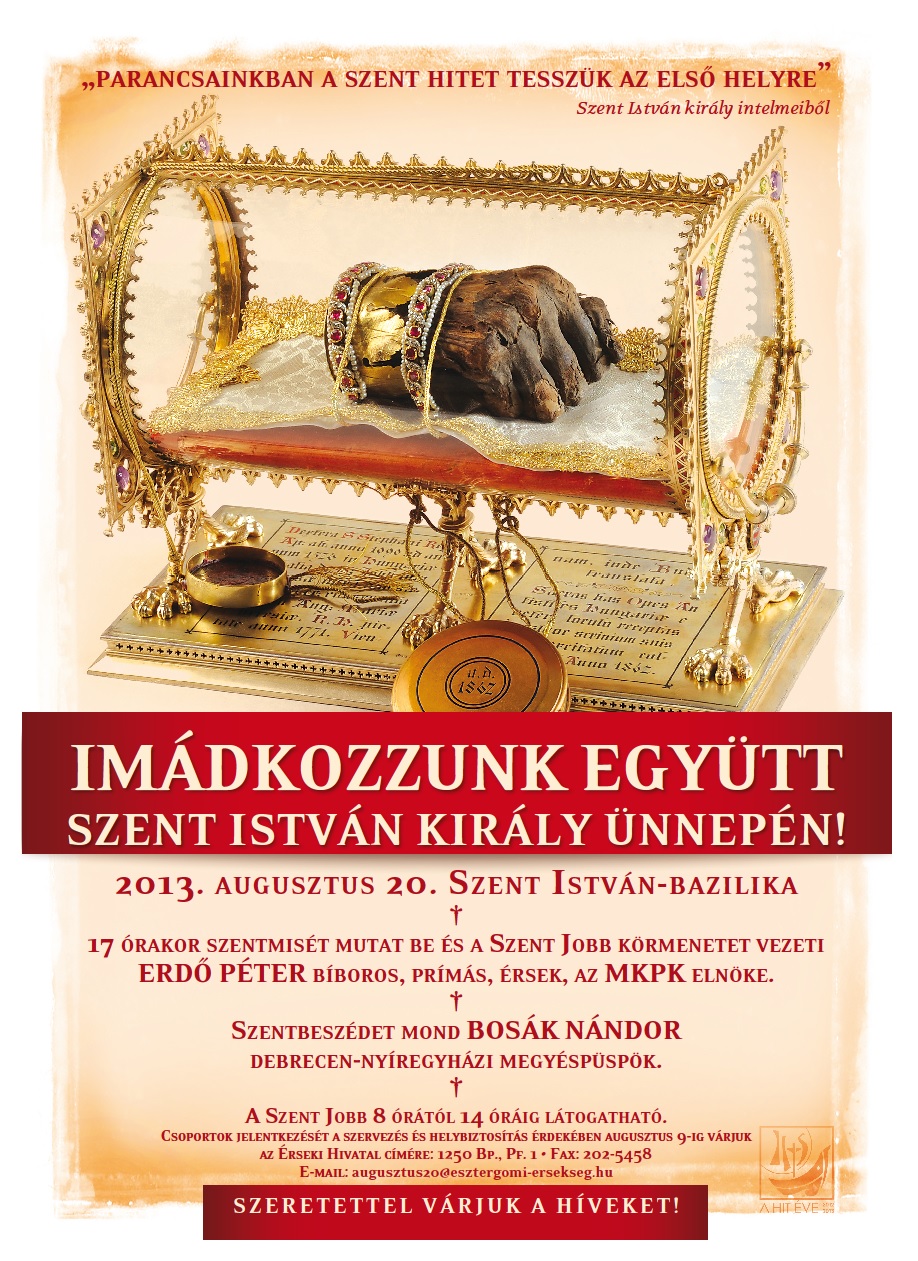 2013. August 21. 14:21 Szent Istvánt ünnepelve első királyunk hitét kell megértenünk, mert erre épült élete, műve és tanítása. Ez a hit kaput, távlatot, jövőt nyit a teljesség, Isten világa felé, hogy abban bontakozzon ki életünk, és em...